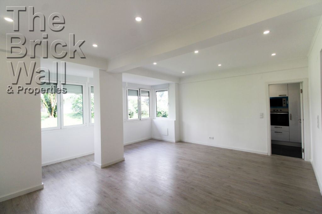 Dispõe de um hall de entrada de 5 m2, cozinha de 10 m2 equipada com móveis em branco; tampo em silestone preto, forno, placa, exaustor, micro-ondas, máquina de lavar louça encastrada, máquina de lavar roupa encastrada, esquentador e combinado encastrado, sala de estar de 35 m2, 3 Quartos, o primeiro com 14 m2, o segundo com 14 m2 e varanda aberta e o terceiro com 18 m2, todos com roupeiros, casa de banho de 4 m2.